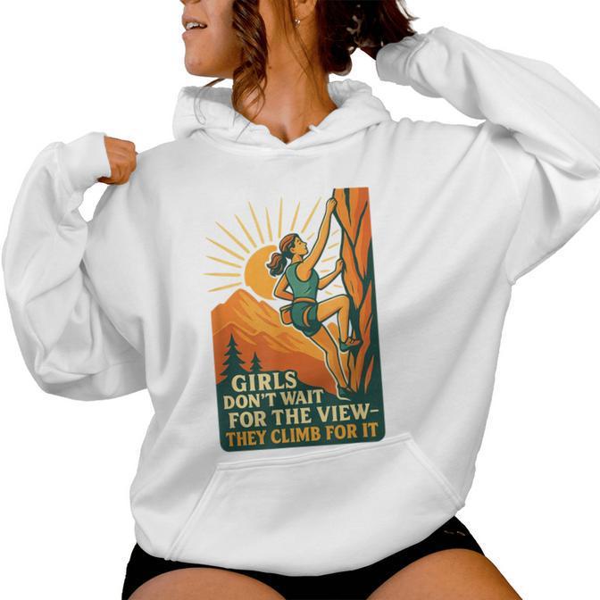 Girls Climb For The View Retro Hiking Climbing Adventure Women's Hoodie
