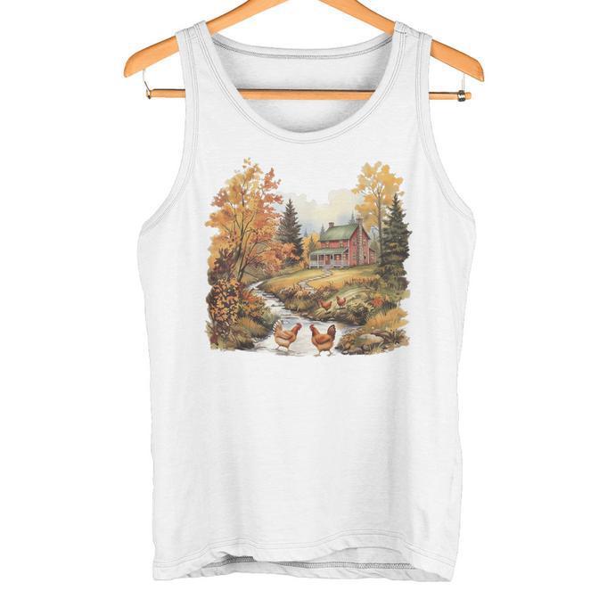 Retro Chickens And Red Barn Crew Neck For Fall Tank Top